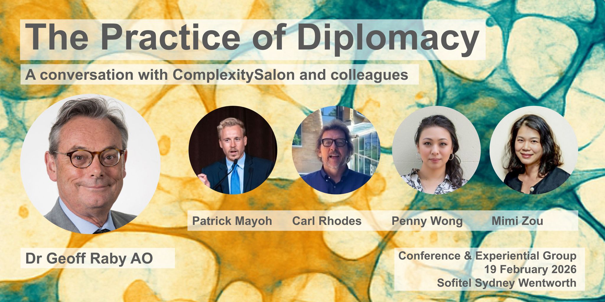 To look around the world at the moment one might conclude that there is a reformulation of how to exercise power and influence. Out go empathy, rules of engagement, liberal interdependence, good enough consensus, and in come chainsaws, coercion, bullying and faits accomplis. ComplexitySalon is delighted to host Dr. Geoff Raby AO - Australian Ambassador to China 2007-2011, Ambassador and Permanent Representative to the World Trade Organisation and to APEC amongst other major appointments; and author of a number of books and papers on global politics, including his most recent Great Game On: The Contest for Central Asia and Global Supremacy - to talk about the practice of diplomacy.